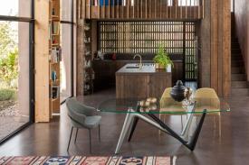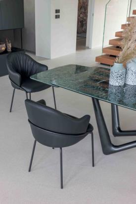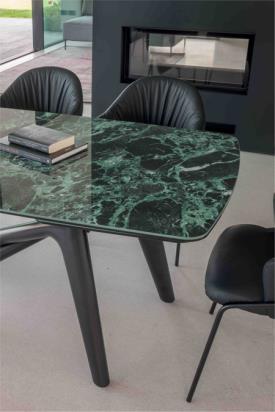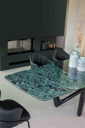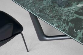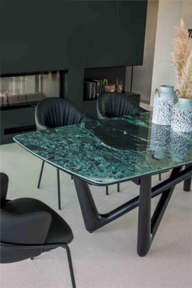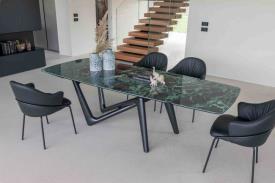 Compar Design. Andrea Lucatello Dimensions : l 200/.../294 x h 75 x p 99 cm La table Esse est dynamique et résolument innovante, tant sur le plan esthétique que fonctionnel. Un pont imaginaire pour créer la table de vos rêves. Objet sculptural, sa structure s'entrelace comme les doigts d'une main, soutenant délicatement le plateau en céramique Verde Alpi, présenté ici, et accompagnant ses mouvements. Polyvalente et exclusive, elle est idéale pour accueillir des invités de dernière minute dans un confort absolu.