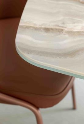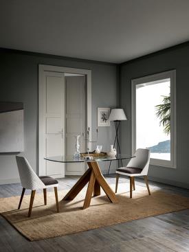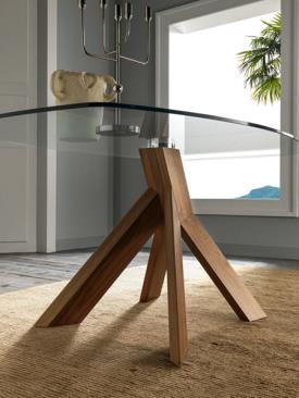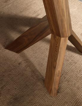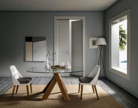 La table Moà déploie toute sa majesté, puisant son inspiration dans la nature. Telle un chêne, Moà semble s'enraciner profondément dans le sol, soutenant avec force son plateau en verre, aussi transparent et éthéré qu'un ciel sans nuages.